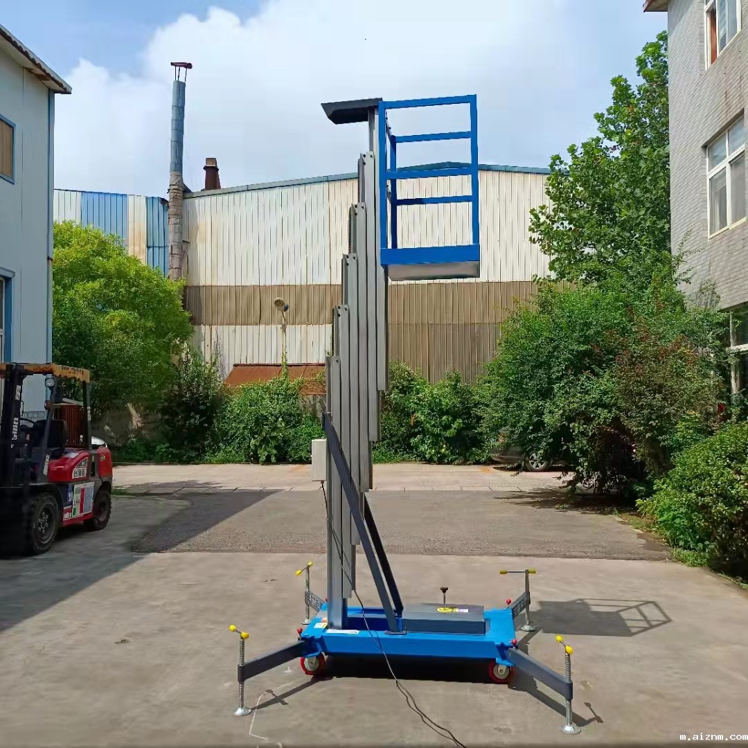 对于铝合金升降机的动力来源依旧选择液压油配合电机进行提供动力,因此其无排放,无污染,是绿色环保的高空作业设备。