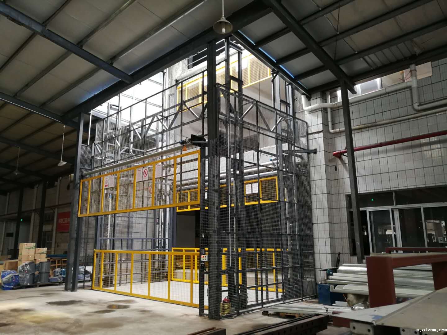 四柱式雷竞技官方app采用了四角立柱+液压油缸+板式链条+钢丝绳等4重安全防护,且各楼层间设有限位开关及缓冲设备,缓解了雷竞技官方app到达制定楼层时的缓冲力,且平台设有紧急停止按钮、紧急下降按钮等,为各类突发事项做好了万全准备。